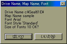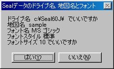 2回目以降の起動時には、以下のような「SEALのドライブ名、地図名とフォント」メッセージボックスが現れ、これでよいか確認をもとめるので、変更が必要なときのみ、[いいえ]を選択し、初回と同じように入力する。