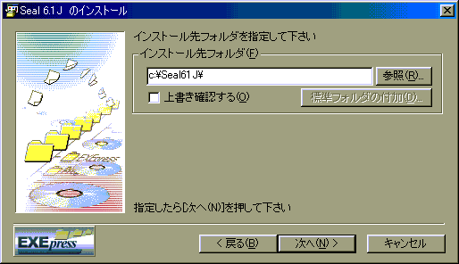 なお、1の場合はc:\Seal61J\に、2の場合はc:\Seal61E\に、3の場合はc:\Seal6J\にインストールしますので、それぞれSeal61J、Seal61E、Seal6Jと呼んで区別します。