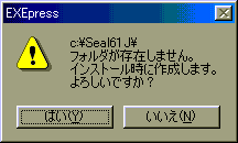 c:\Seal61J\フォルダーがないときには、「作成しますか」ときいてくるので、[はい]をクリックする。