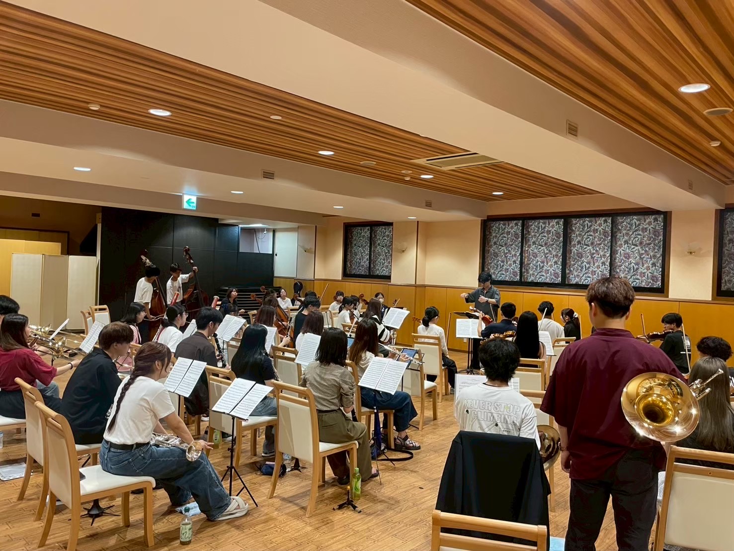 主な演奏会はサマーコンサートと定期演奏会で、アンサンブル発表会なども行っています。活動日は毎週水曜日と土曜日、場所は新潟大学旭町キャンパスです。団員は100名を超え、普段の練習に加えて合宿やイベントを通してパートや学校を越えた交流も生まれています。オーケストラは堅い印象を持つ方もいるかもしれませんが、実際は明るい雰囲気で、演奏会後には打ち上げもあります。また、おけらは、2027年に100周年を迎える歴史ある団体です。そんな記念すべき年を私たちと一緒に過ごしませんか?初心者の方も大歓迎なので、興味のある方はぜひ新歓へお越しください!