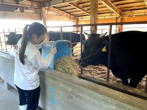晴天に恵まれ、農業大学校の豊かな自然を満喫しながら、稲刈りやコンバイン操作、肉牛への餌やり、米粉パン作りを体験しました。畜産作業体験は今年度はじめて行われ、畜産動物に対する感染症予防の重要性や、動物の命を糧として生きていることを改めて実感する、貴重な経験をしました。