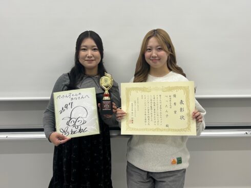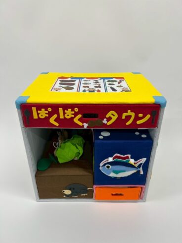 人間生活学部子ども学科4年の野田羽和乃さんと長谷川葵さんによるチーム「ぺったん子」の「ぱくぱくタウン」が、「手作りおもちゃコンテスト2025」(京進のほいくえんHOPPA 主催)にて「優秀賞」を受賞しました。北海道から沖縄まで全国115チーム、総勢367名がエントリーし、そのうち49作品が最終選考にノミネートされました。さらに最終選考作品に対してWEB投票を行い、9月7日に最優秀賞(1作品)、優秀賞(2作品)をはじめとする12作品の入賞が決定しました。「ぺったん子」チームは昨年度の「おもちゃコンテスト2024」に続いて2度目の入賞です。