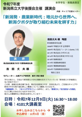 12月9日(火)に、新潟県立大学後援会主催による講演会を開催しました。