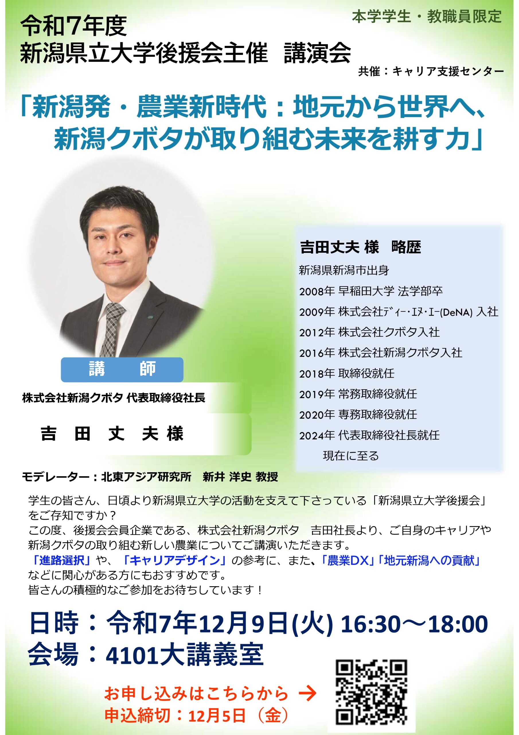 「新潟発・農業新時代:地元から世界へ、新潟クボタが取り組む未来を耕す力」と題したご講演をいただきました。
