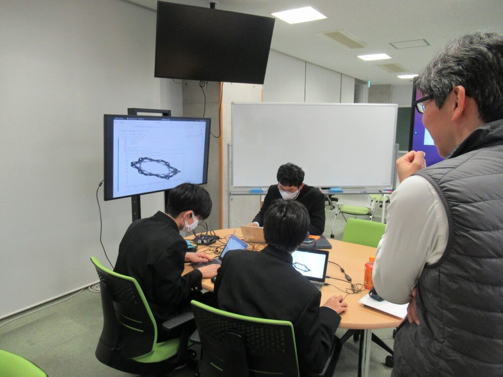 思いもよらぬ曲線や図形の出現に、会場では何度も驚きの声があがり、参加した生徒からは「値だけでは読みとれない小さな部分は、可視化してみることで読みとれるようになるのだとよくわかった」「実践(アウトプット)の比率が高く満足感が高かった」などの感想が寄せられました。